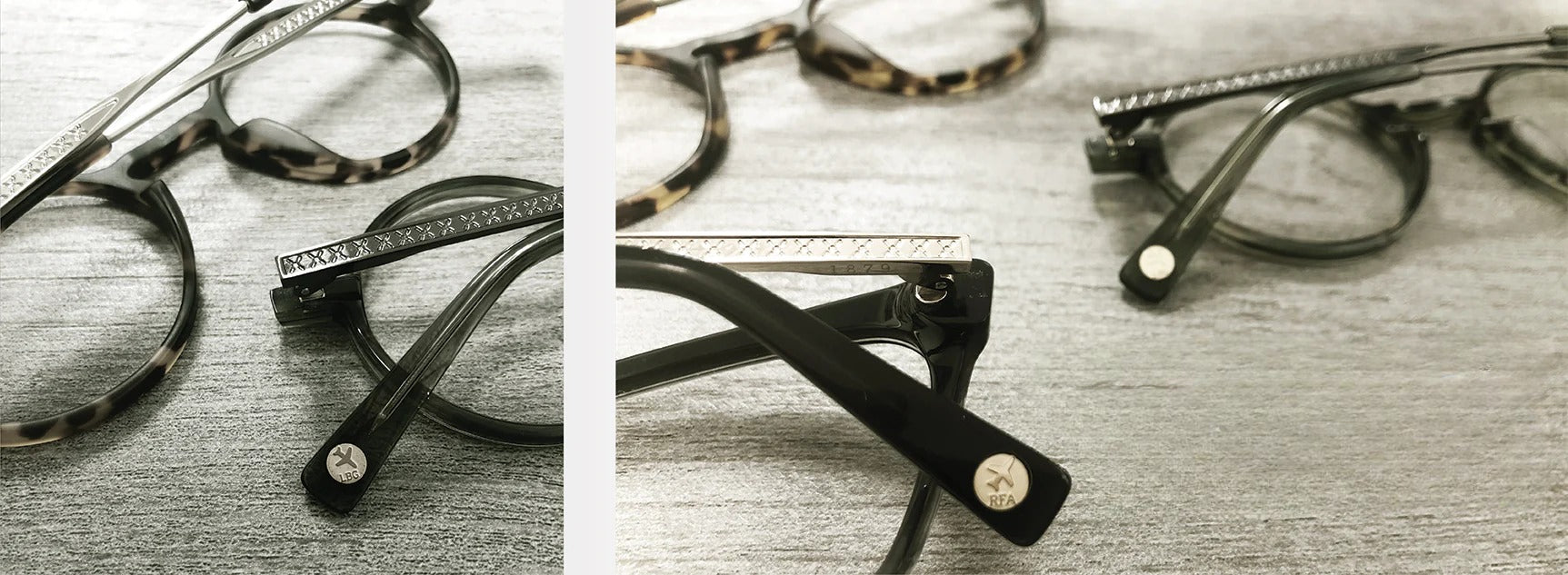 If you look closely on the temple tips, you will see on one side, the airplane emblem with the New York airport code (RFA), while on the other side, the Paris airport-code (LBG).