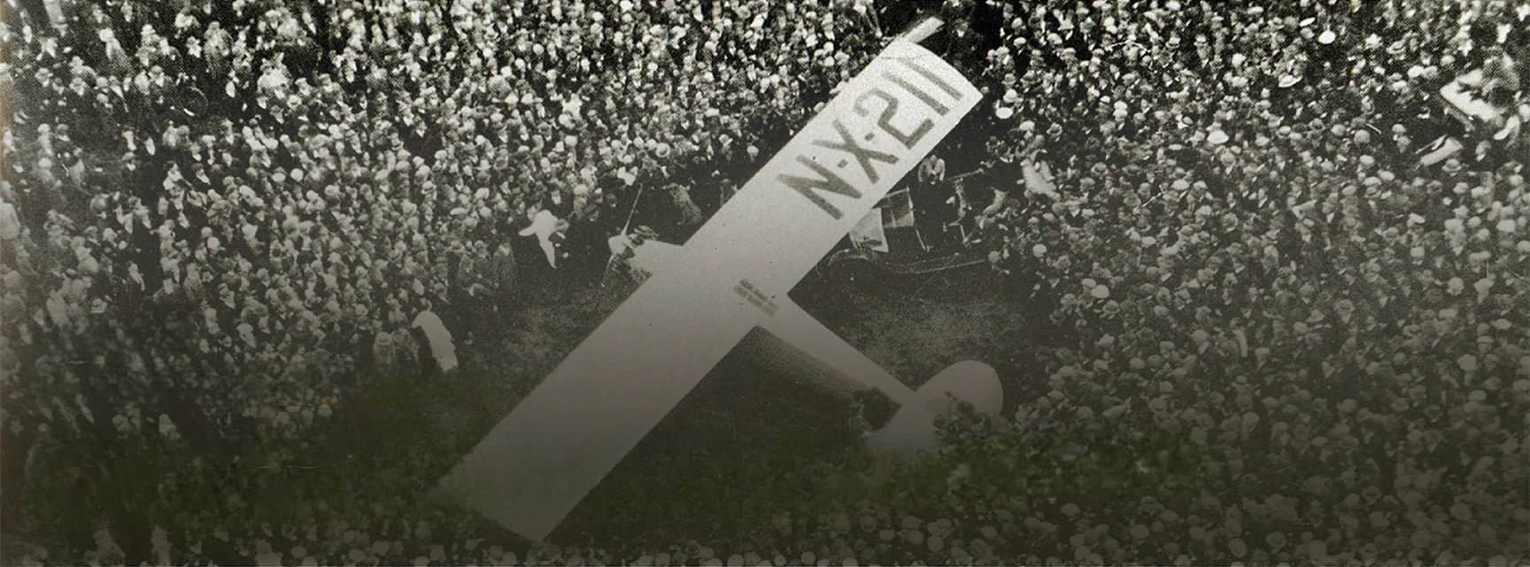 His single-engine monoplane, The Spirit of St. Louis, had lifted off from Roosevelt Field in New York and landed at Le Bourget Field in Paris, the first non-stop flight across the Atlantic Ocean, taking a total of 33 1/2 hours.